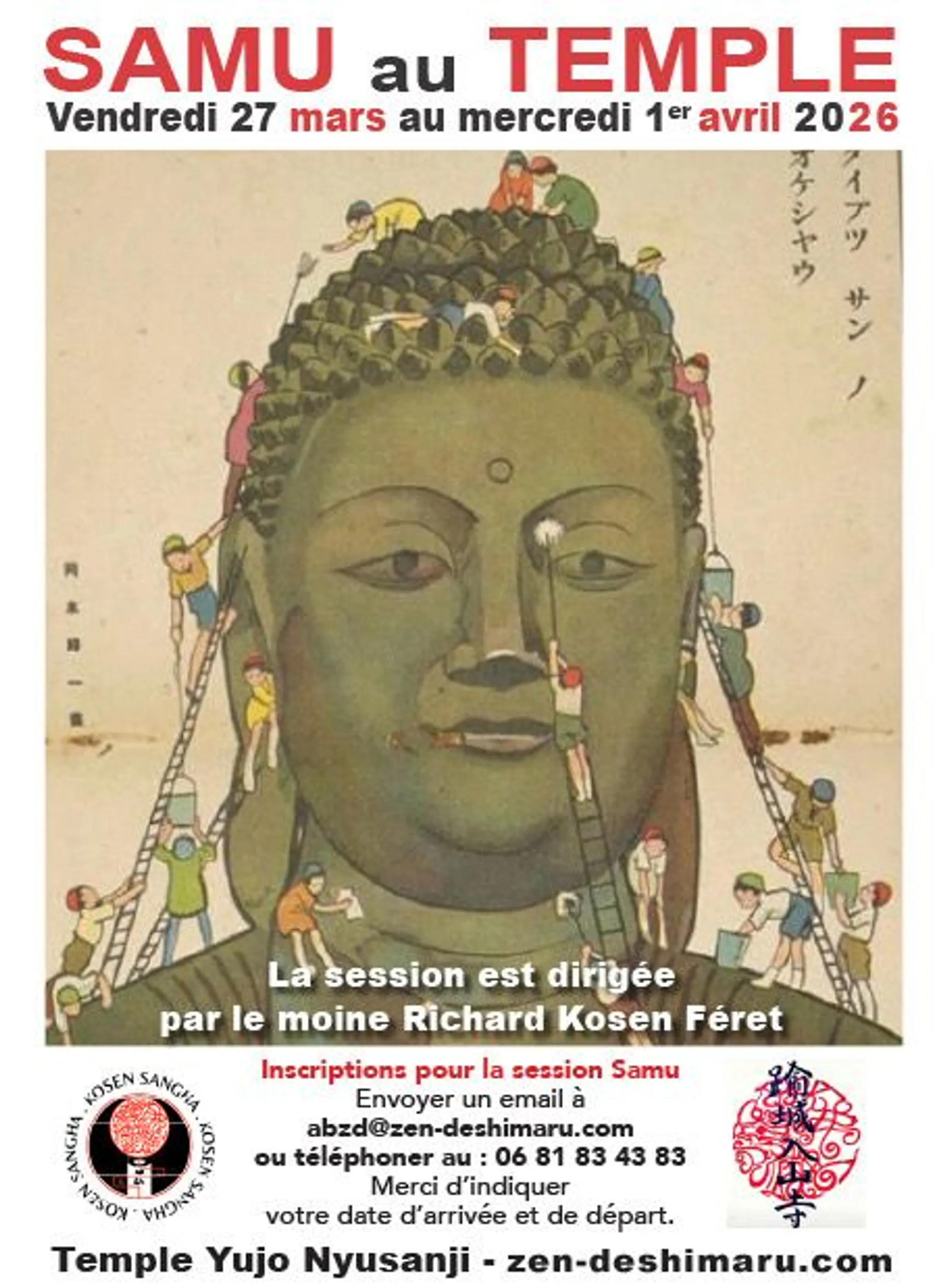 Las monjas y los monjes presentes se comparten la dirección de los zazens. Inscripciones limitadas a diez personas por semana. Puedes venir unos días o toda la semana. Trabajo en exterior o interior según el clima. Buena disposición y energía positiva son bienvenidas.