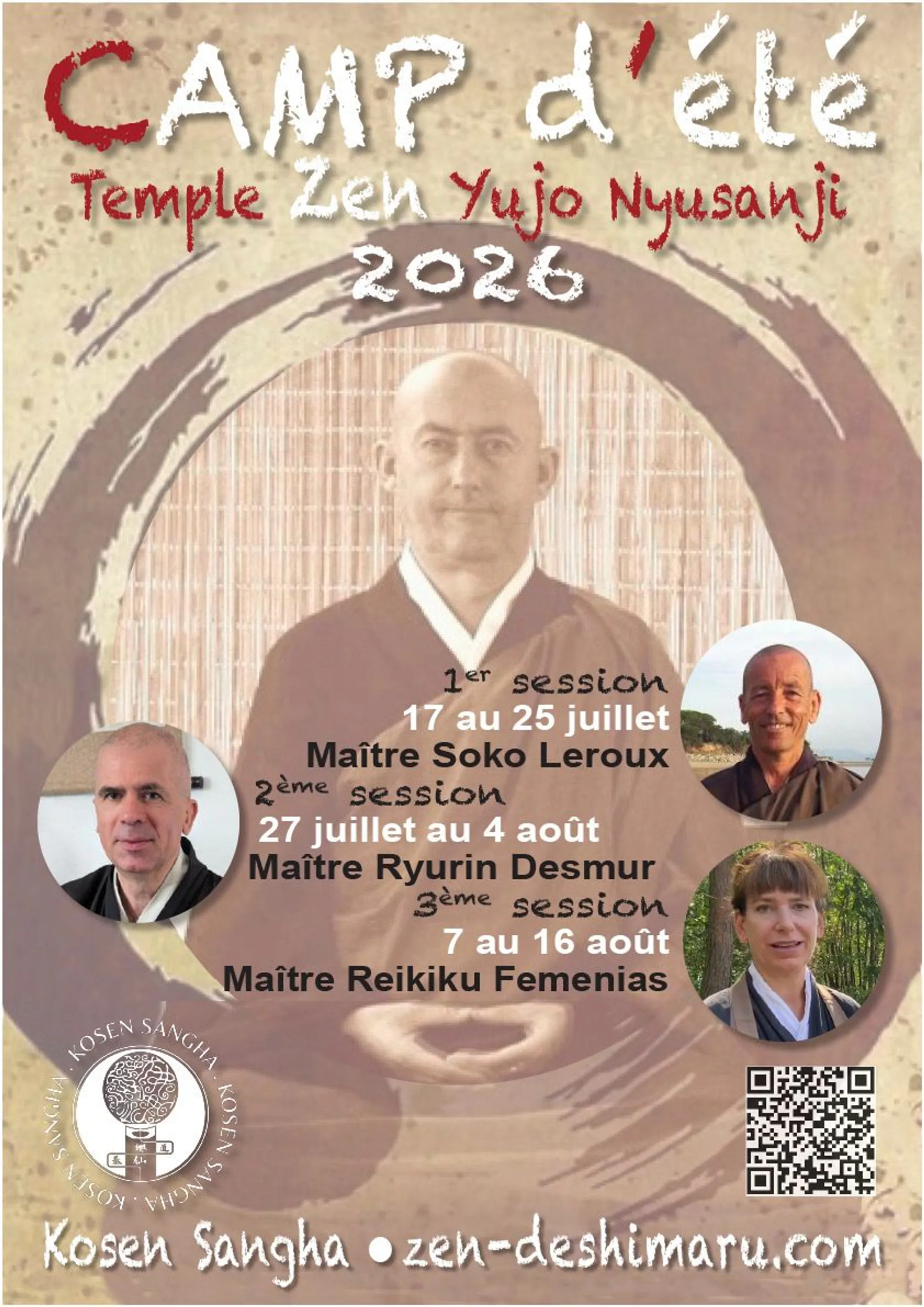 Du lundi 27 juillet au mardi 4 août, 5 jours préparation, 1 jour de repos, 2 jours et demi de sesshin.